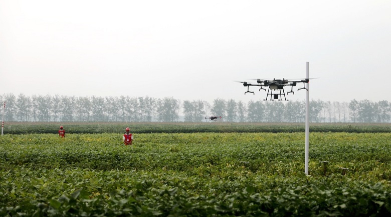 准备好了吗?起!比赛开始。在农用无人机竞赛场地,随着裁判员一声令下,解锁、起飞、推杆、找准位置、喷洒,原先停在地上的“大疆”、“极飞”无人机在参赛选手的操控下均匀喷洒、轻巧绕过障碍物,仅两分钟左右,一块两亩大小农田就作业完毕,无人机稳稳停在指定区域。