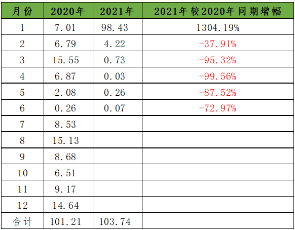 表1 俄罗斯大豆出口量2020年与2021年对比情况(单位:万吨)