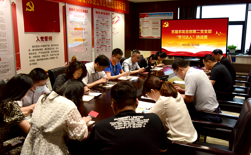 为迎接党的二十大胜利召开营造良好氛围,引导支部党员真正做到学党史、悟思想、办实事、开新局,7月28日下午,苏垦农发总部第二党支部开展“学史增信 厚植爱国情怀”主题党日活动,除“第一议题”学习、开讲十分钟、交流学习心得、观看廉洁文化视频、现场交纳党费等环节,支部党员面对面在线上开展了“学习达人”挑战赛。