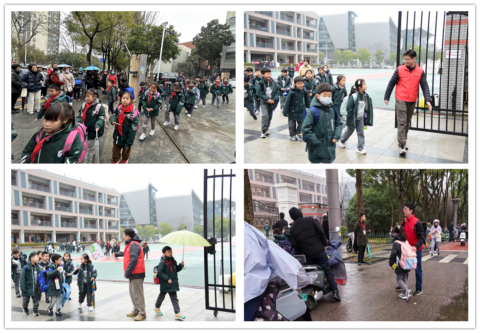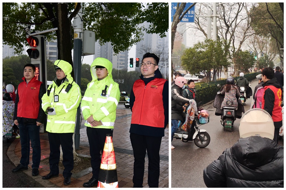 用心“护学”,为爱“站岗”。每到上学、放学高峰期,南师大附属中学新城小学、金陵中学河西分校小学部的校门口都很拥堵,车流量大,来往人员众多。活动当日,志愿者们不畏严寒早早来到校园门口,开展“护学岗”志愿服务,疏导学校周边的车辆和人员,提醒接送孩子的家长不要扎堆,引导放学的孩子到安全区域行走,时刻提醒骑电动车、摩托车的家长注意雨天行车安全,确保学校周边交通安全有序,为师生、家长的安全出行筑起一道“绿色”通道。