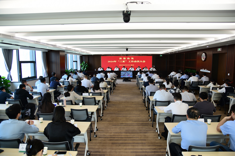 •        5月17日上午,苏垦农发召开2024年“三夏”工作动员大会。集团公司总经济师、苏垦农发党委书记、董事长朱亚东主持会议并讲话,农垦集团党委委员、苏垦农发总裁丁涛作动员报告。苏垦农发党委委员、副总裁周义东,苏垦农发副总裁徐启来分别就一体化全农服务、“三夏”期间农业生产工作作了具体布置。