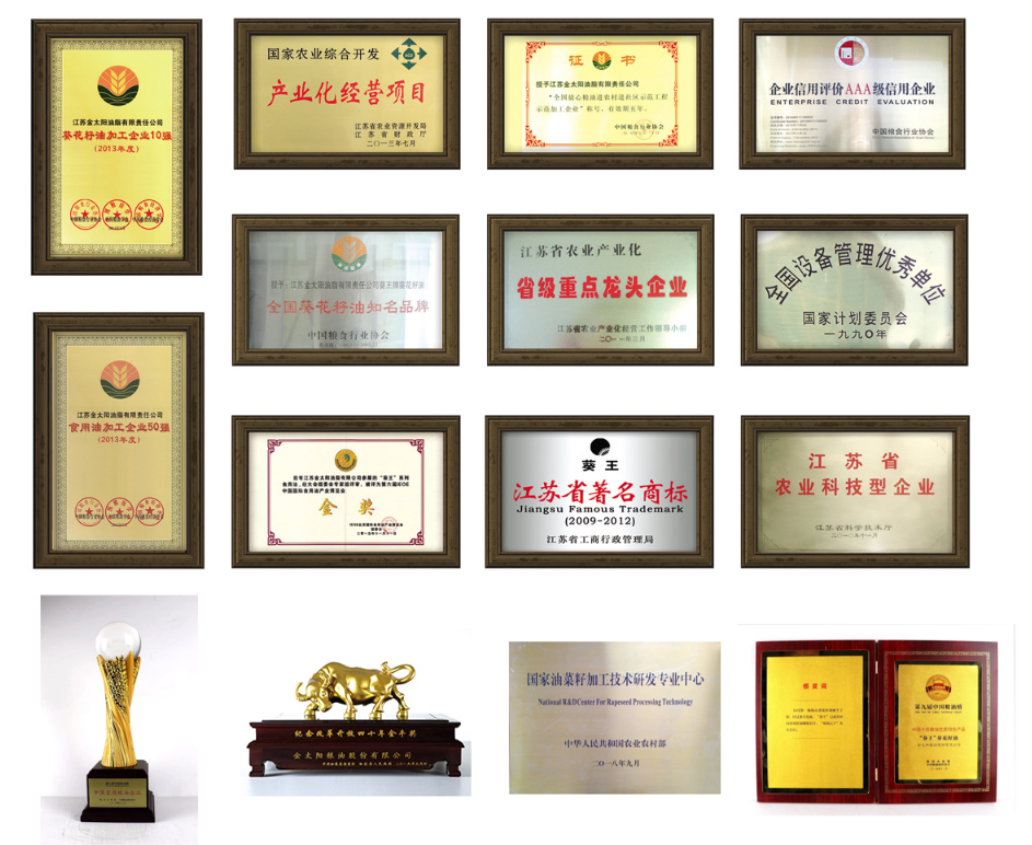 金太阳粮油以绿色健康为生命,实现全程质量控制体系生产过程全覆盖,用国企担当切实守护国人餐桌健康。强化产品研发与改良,依托苏垦农发全产业链发展优势,联合江南大学、河南工业大学等共同研发稻米油等系列新产品,为广大消费者提供更多更优的选择。经过多年创新发展,金太阳现已成为农业产业化国家重点龙头企业、国家农业综合开发重点项目企业、全国首批放心粮油加工示范企业,中国好粮油加工示范企业,是“国家油菜籽加工技术专业研发中心”。已通过中国绿色食品、有机食品、江苏精品等认证,中国粮食行业协会AAA级信用企业,成长为食用油行业“小巨人”。