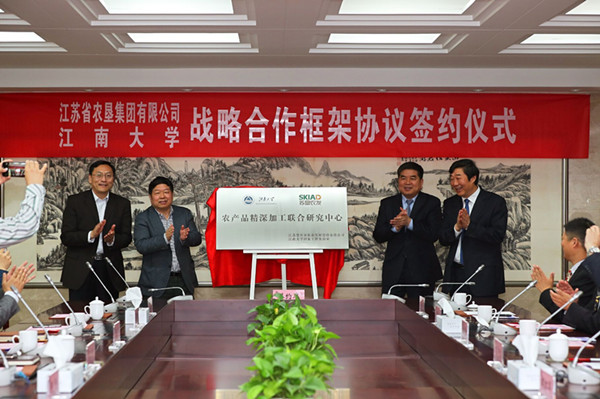 苏垦农发股份公司与江南大学国家工程实验室聚焦国际“大健康、大食品、大产业”前沿技术,合作共建农产品精深加工联合研究中心。江苏农垦与江南大学有着长期而深厚的合作基础,双方建立全面战略合作关系、共建农产品精深加工联合研究中心,是双方发挥各自优势、推进“产学研用”深度合作的重要举措。研究中心围绕优势互补、强强联合,深入开展协同创新,共同打造全省农产品精深加工、农产品质量安全、农业物联网应用的示范基地和校企紧密合作的新典范。双方以此为起点,将战略合作向更深领域、更高层次推进,深度整合、共享科技资源和产业资源,共同为全省乃至全国农业现代化建设作出更大贡献。